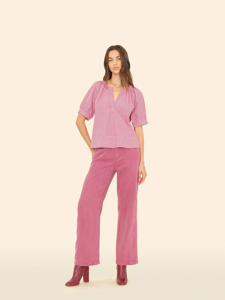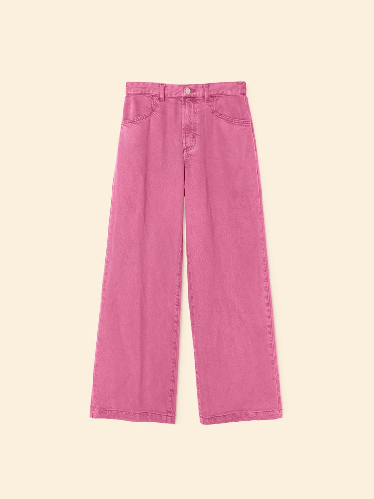 Forever Denim. Nixon is made in our drapey, ultra-soft lyocell denim. This high-rise five-pocket pant features a zipper fly, elasticized back waist, and a wide leg.