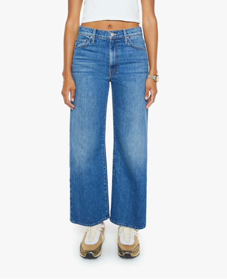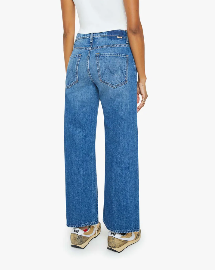 Plant whisperer. Jeans designed to sit lower on the hips with a loose wide leg and an ankle-length inseam. Cut from rigid SUPERIOR denim, Green Thumb is a classic mid-blue with subtle whiskering, fading.