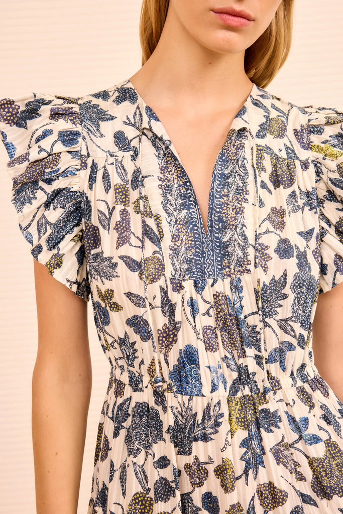 The Kairi Dress personifies wear-everywhere elegance on sun-filled days. This multicolored dress is made from cotton-blend with a melding of batik florals atop soft stripes, and walks with soft, easy movement.