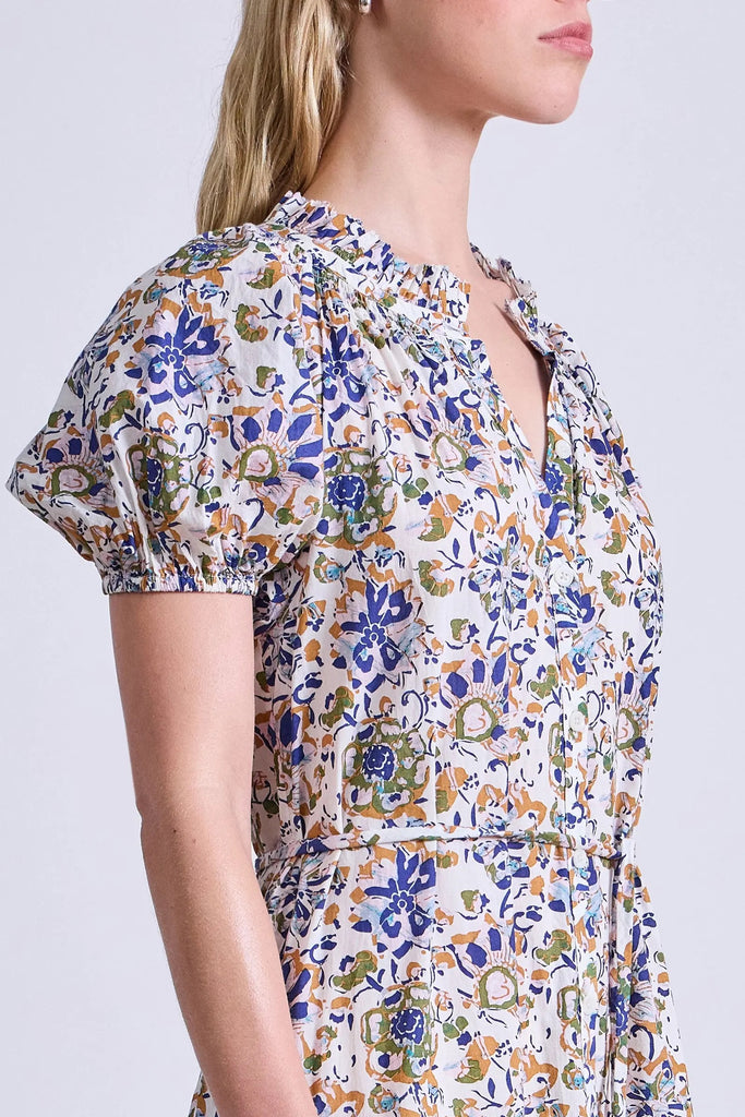 - Tiered skirt, flowy silhouette, puff sleeves, removable self tie belt included